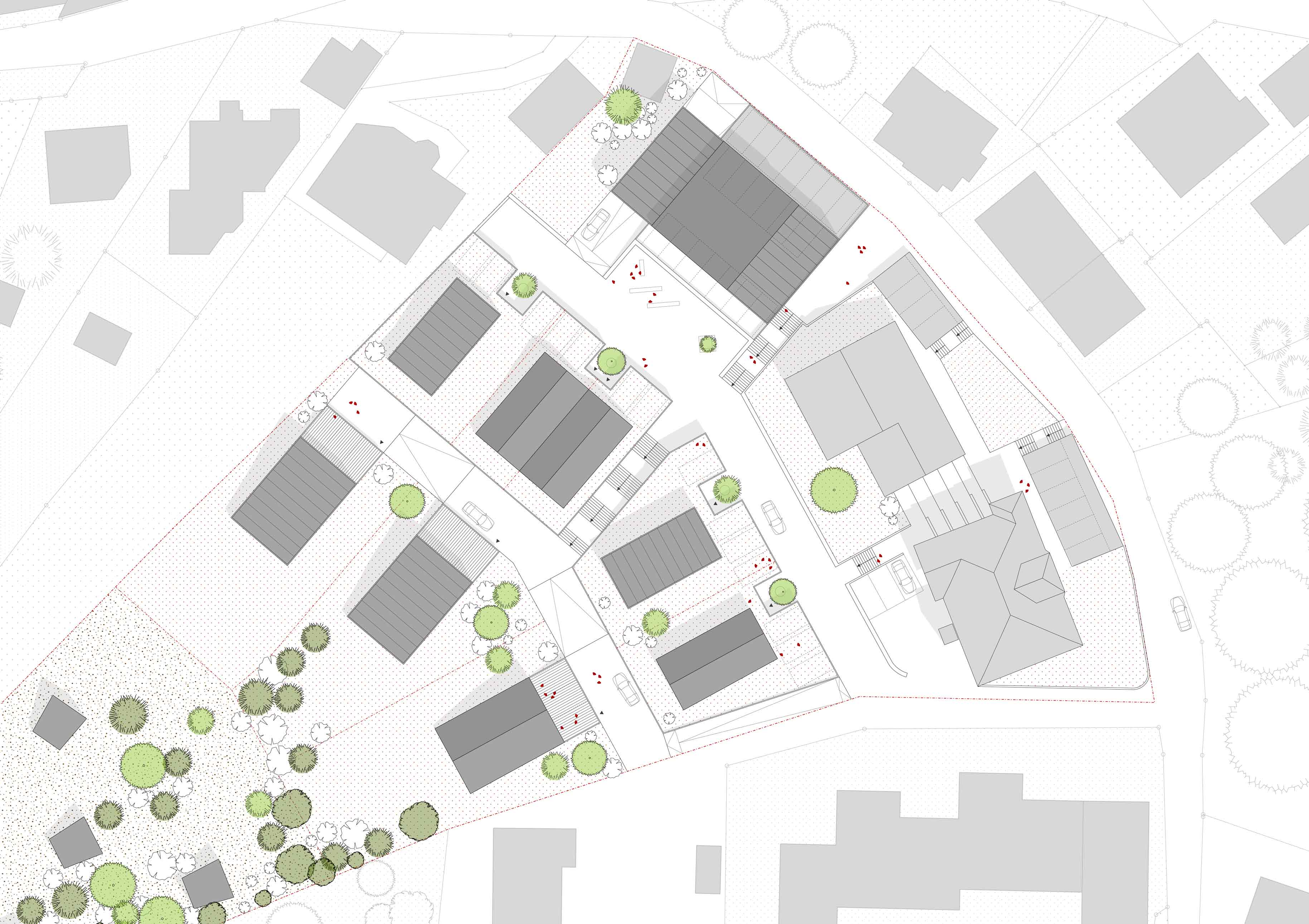 Das Grundstück befindet sich an einer recht steilen Hanglage mit einem sehr attraktiven Ausblick über das Tal und die Ortschaft Bad Wildbad (Nord Schwarzwald). Die Aufgabe bestand darin, ein übergreifendes Entwicklungs- und Gestaltungskonzept für das Gesamtareal zu entwickeln, welches dann als Basis und Grundlage für die zukünftige Entwicklung des Gesamtprojektes fungiert und darüber hinaus auch bei der Vermarktung der einzelnen Immobilienobjekte helfen kann.