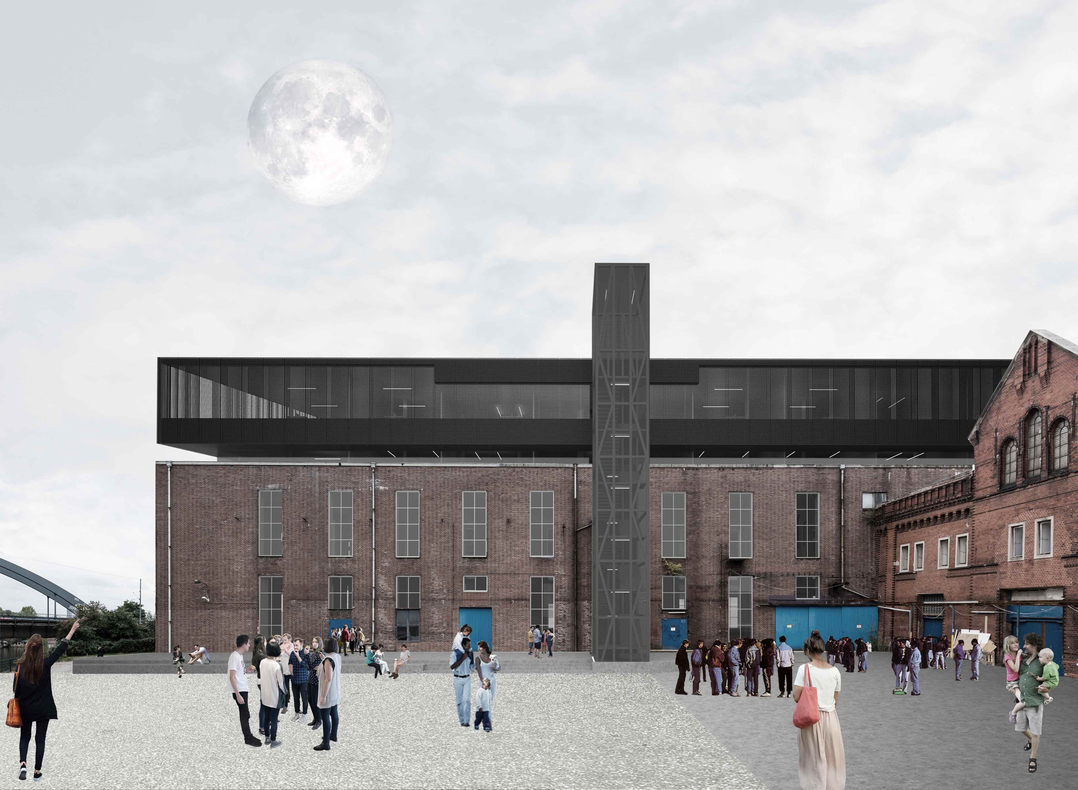 Die Aufstockung der ‚Kohlenhalle’ an der Bille ist ebenfalls als räumliche Erweiterung des Kraftwerk Bille Ensembles gedacht mit Nutzung als Büro, Akademie und Co-working.